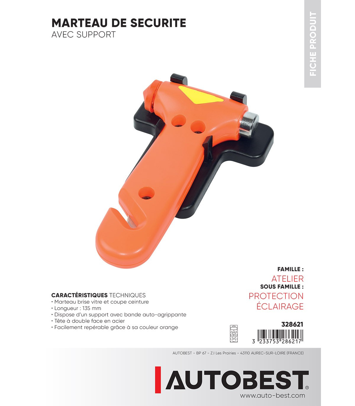 - Marteau brise vitre et coupe ceinture