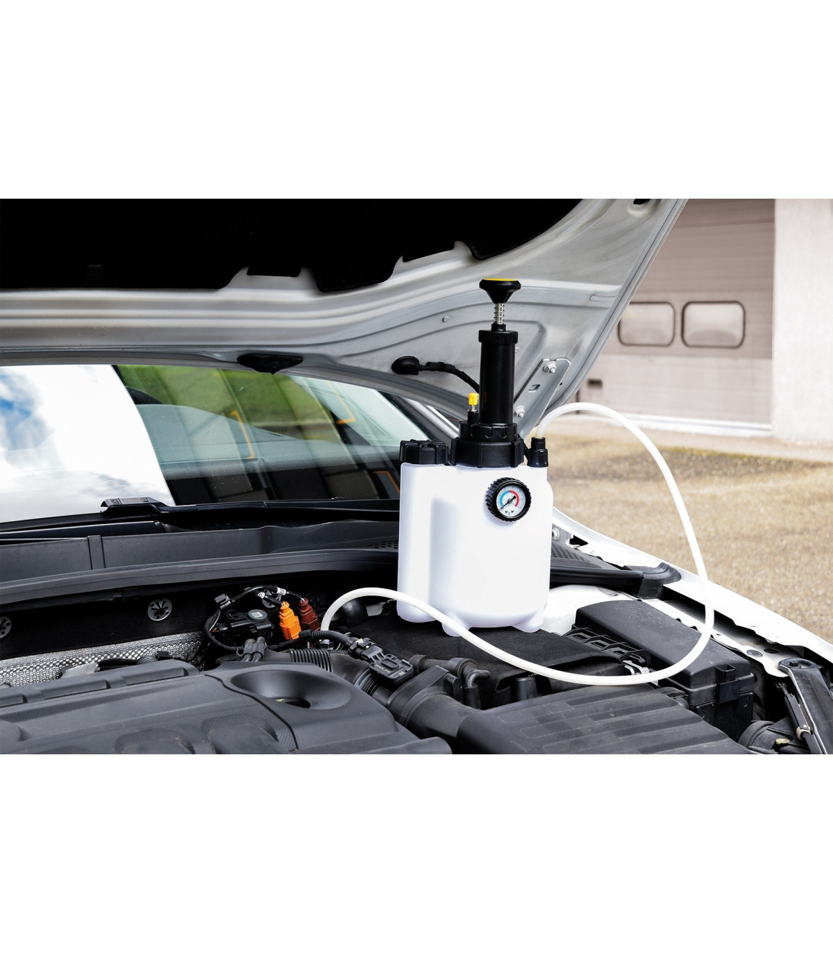 - Équipé d’un connecteur rapide pour bouchon de bocal de liquide de frein.