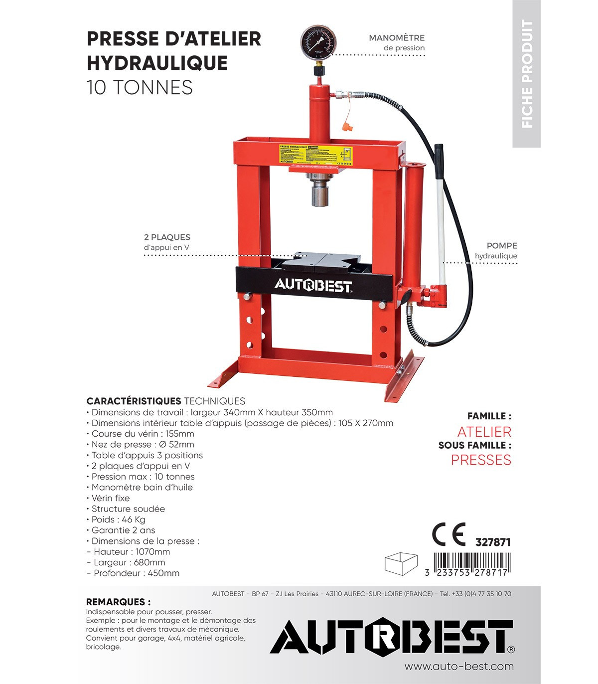 Indispensable pour pousser, presser. Exemple : pour le montage et le démontage des roulements et divers travaux de mécanique. Convient pour garage, 4x4, matériel agricole, bricolage.