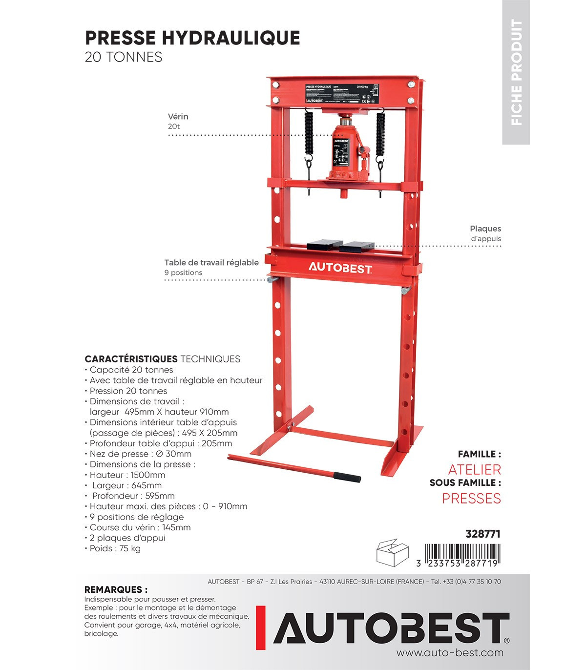 - Pression 20 tonnes