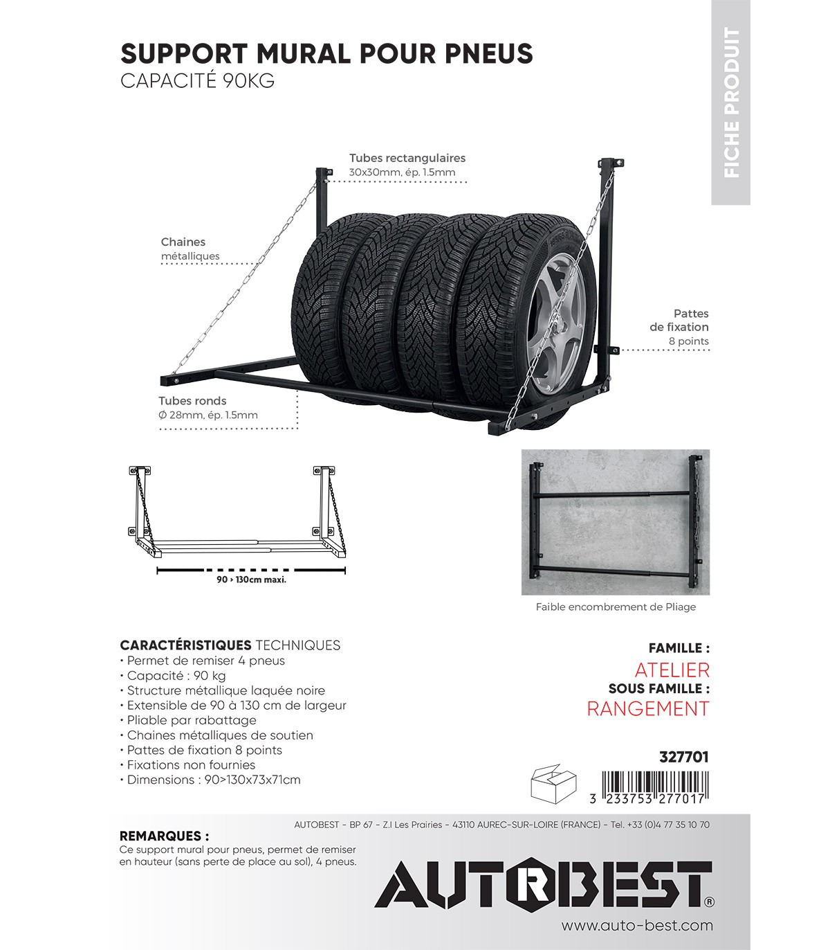 - Permet de remiser 4 pneus